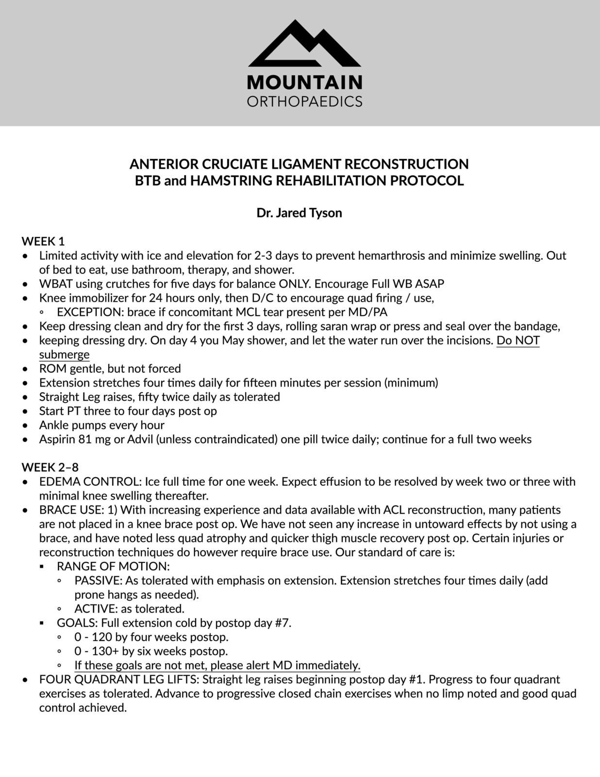 Included below are the standard rehab protocols for the surgeries we perform. Should you have any questions, please contact our office and we will be happy to assist you.